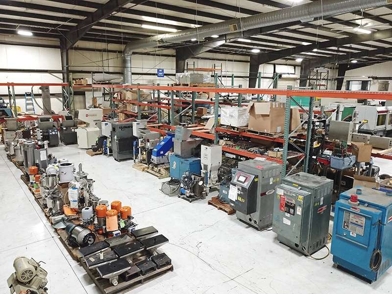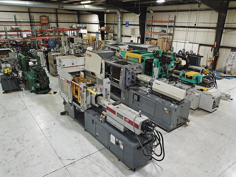 Featuring: (39) Injection Molding Machines from 20 Ton to 500 Ton, Thermolators, Dryers, Chillers, Hot Runner Controls, Granulators, Tool Room Equipment, and more
