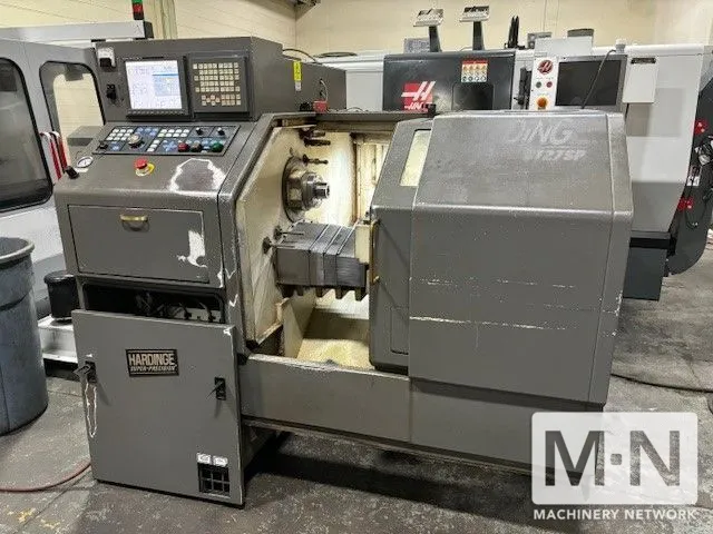 Explore our Hardinge Conquest GT CNC Lathe! With an 11.76" swing, dual-axis control, 6" chuck, and 1.062" bar capacity. Reliable 5 hp motor, max 6,000 RPM. Features GE Fanuc 18i-T, gang tooling, and parts catcher. Perfect for precise machining.