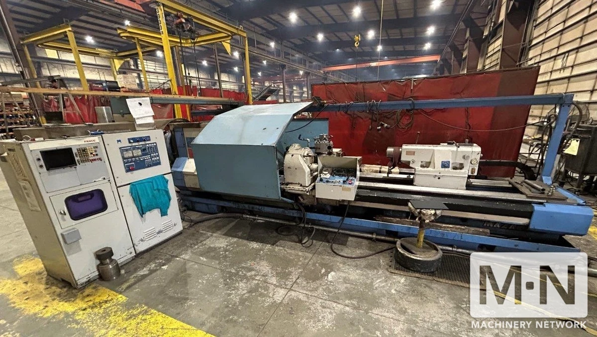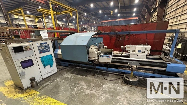 For sale: 1981 MAZAK Powermaster CNC Lathe, 34" swing, 9.5" spindle bore. Powerful 60 hp motor, max 1200 RPM. Reliable performance for your machining needs. Used condition.