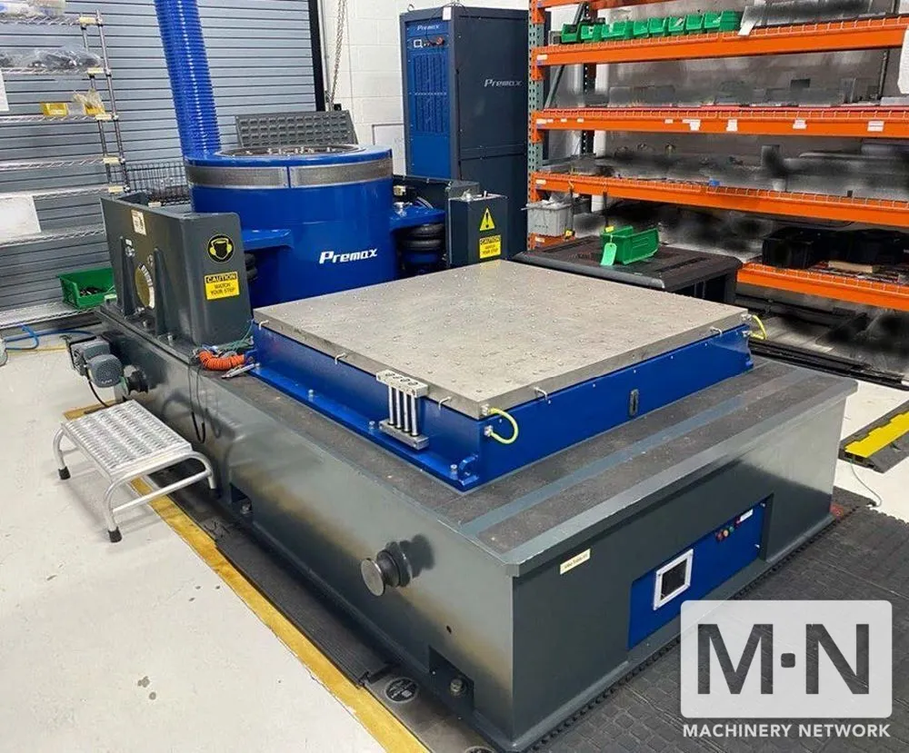 53.4 kN sine force, 106 kN shock force, 48" x 48" table, digital controls, coolant system